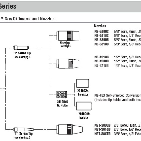 Полный размерный ряд: 0.6 мм (0.023") – 3.2 мм (1/8")